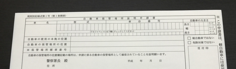 車庫証明の手続をはじめます。 現地調査、書類等作成、警察署への提出等を行います。